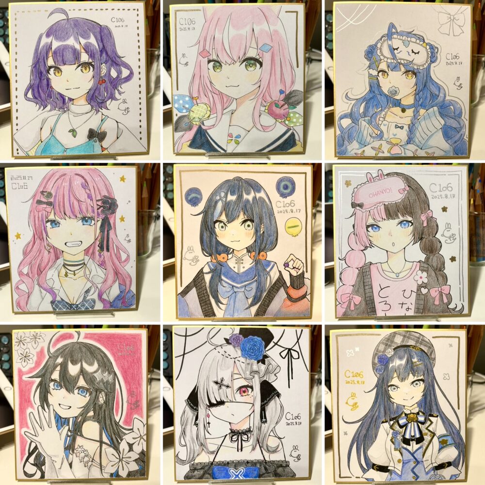 ですが、デジタルで描きたいものが多すぎて色紙にかける時間が足りず、制作途中のものをたくさん残してのイベント参加になりました……