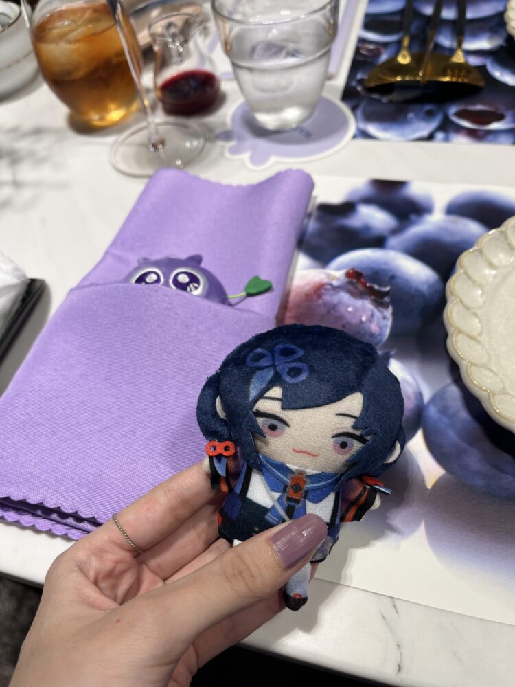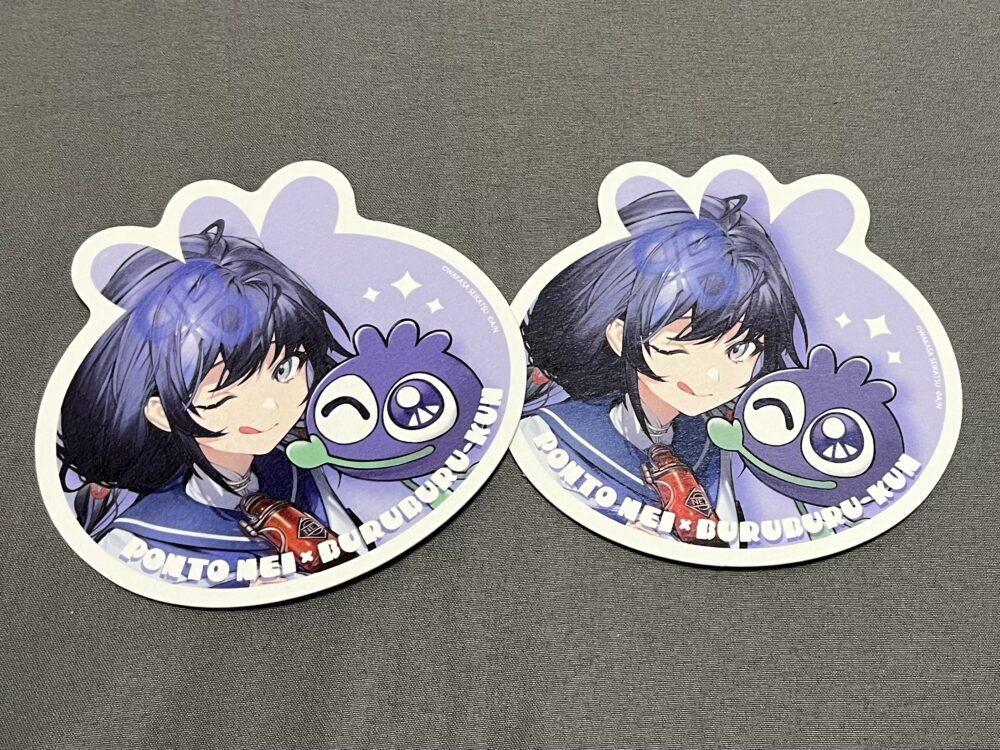 時間いっぱい楽しくしゃべりながらフードとドリンクをいただき、席に着いた時に寝かされていたブルブルくん、購入者特典トートバッグ、コラボコースターをいただいてきました。